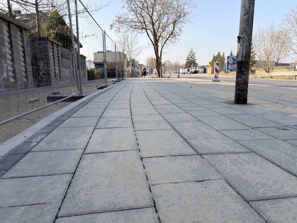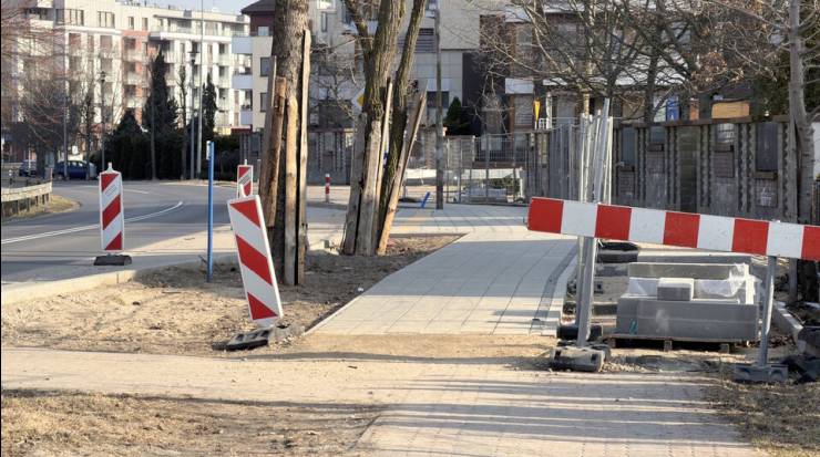 Prace przy budowie drogi pieszo‑rowerowej na Mazowieckiej zgodnie z planem
