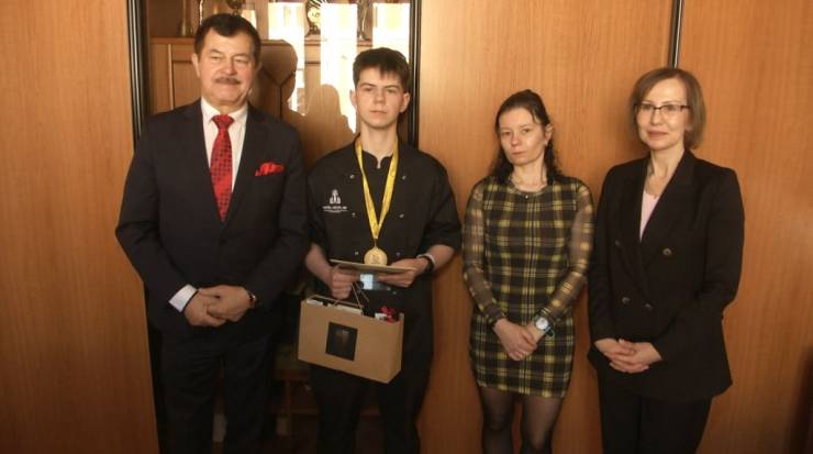 Konrad Wąsowicz, uczeń klasy III G może się pochwalić ogromnym sukcesem na ogólnopolską skalę, został on bowiem zwycięzcą prestiżowego X Ogólnopolskiego Turnieju Kucharskiego w Poznaniu. Wczoraj gratulacje złożył Konradowi starosta Mirosław Tessikowski.