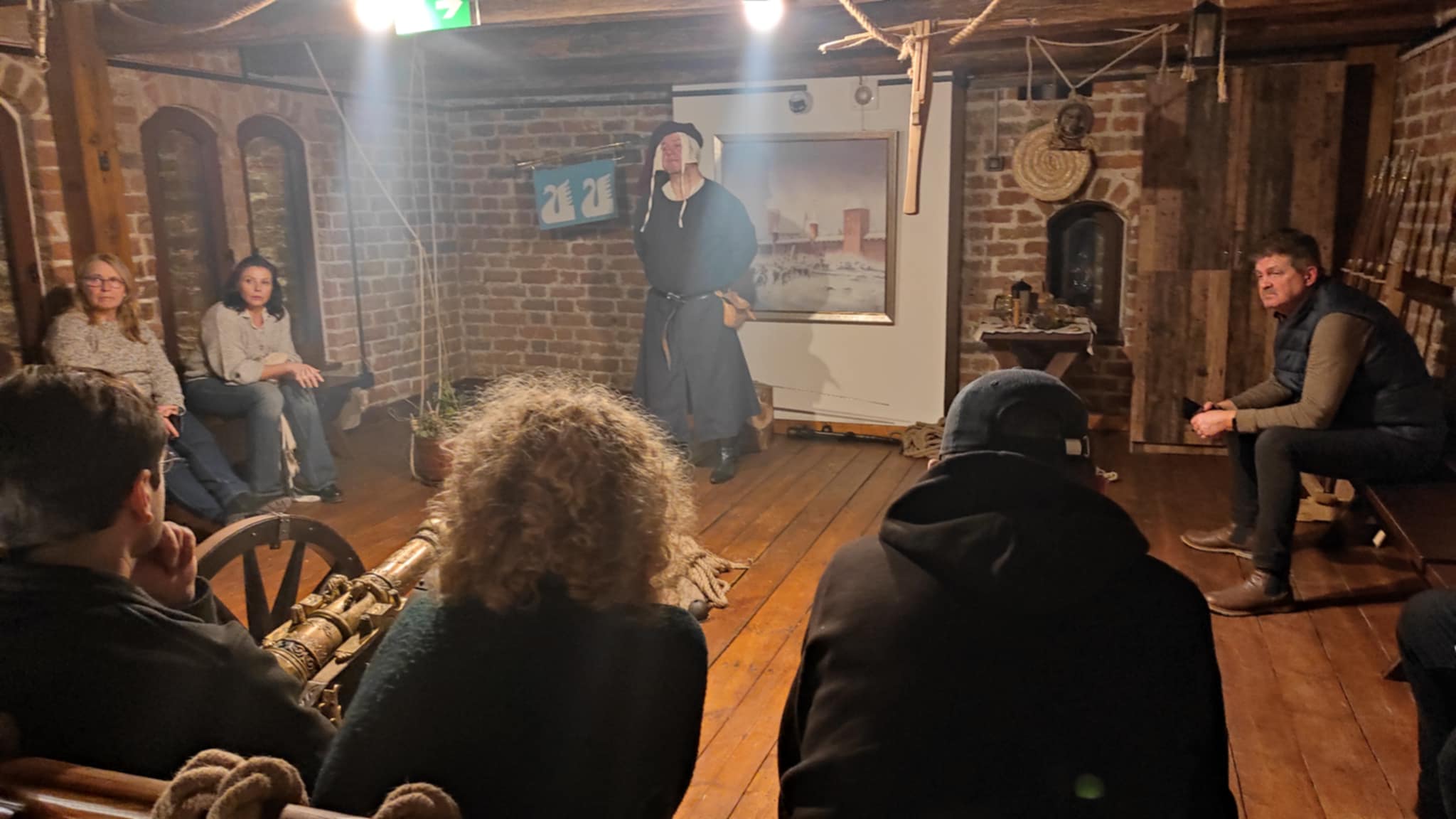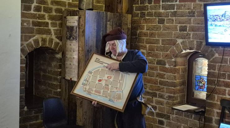Podczas spotkania przypomniano, że konflikt miasta z biskupstwem kamieńskim rozpoczął się już w 1442 roku i przez lata narastał, obejmując spory o port, saliny i władzę sądowniczą. Opowieść skupiła się jednak na kulminacyjnym momencie, czyli ataku wojsk biskupich w 1462 roku, poprzedzonym rozbudową miejskich fortyfikacji i narastającymi napięciami. Słuchacze dowiedzieli się o nocnym ataku od strony Bramy Młyńskiej oraz o dramatycznej obronie miasta w zimowych warunkach. Przywołano barwne szczegóły walk, w tym użycie drabin, kamieni oraz gorącego piwa wylewanego na nacierających rycerzy.